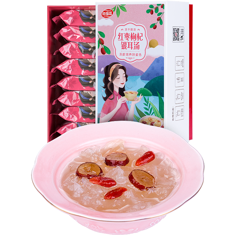 16g*12袋!海福盛红枣枸杞银耳汤!配料表干净!只有银耳,冰糖,红枣枸杞!没有任何添加剂!这样喝的才放心!下单链接: https://uland.taobao.com/item/edetail?id=gPJ46dVxC3t2JBrDbMjhoQPtatr-MPGaznpU4oR0r5dVTZ