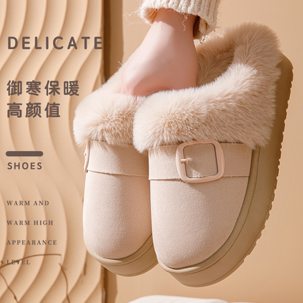 【卟卟松鼠】网红时尚麂皮绒保暖拖鞋