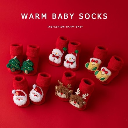 【多款可选】加厚加绒宝宝新年红色学步袜