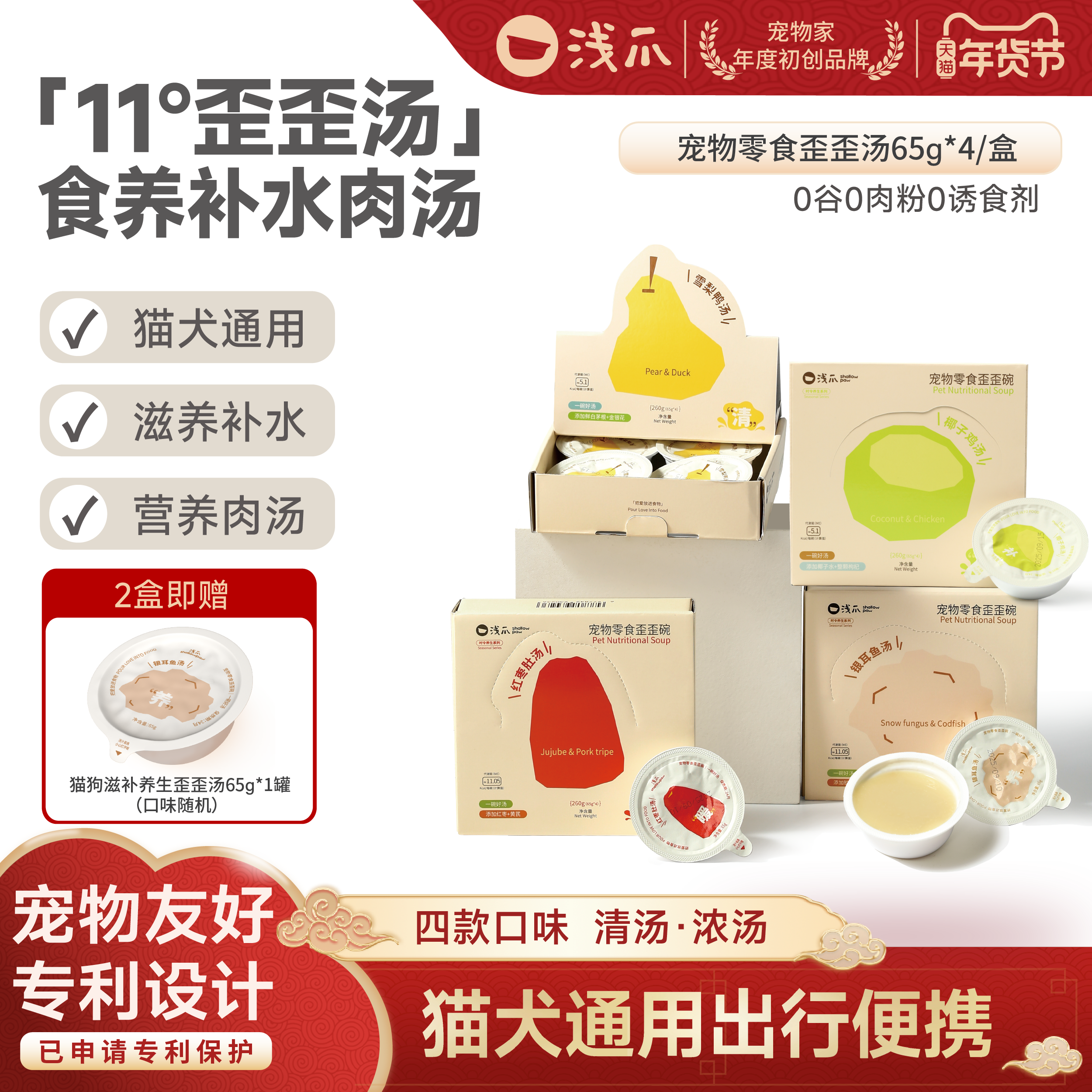 浅爪歪歪汤系列上线!鸭肉梨汤、椰子鸡汤等6款营养配方,专为犬猫定制滋补汤包,天然食材无添加~下单链接: https://uland.taobao.com/item/edetail?id=v76ArBRhZt6keyArvbTAq4S0te-xny6BP3H65yKD9xYs4Y