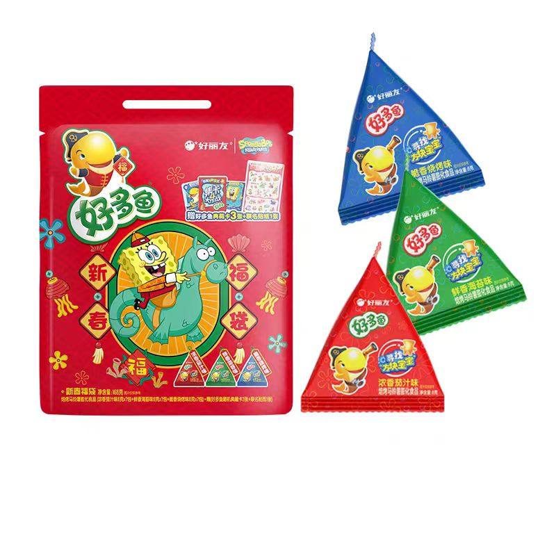 好丽友新春福袋,赠好多鱼点藏卡3张+联名贴纸一张!新增6款联名造型,非油炸0反式脂肪,三种口味一次满足!20款全新卡片,马年送礼好吃又好玩!下单链接: https://uland.taobao.com/item/edetail?id=pVeApkvUxt6wmoKgpAte3buptm-KqGo5mwun44yDbmrsv