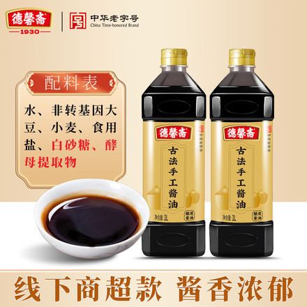 创始于1930年品牌!中华老字,号!省级非物质文化遗产!古法传承,纯粮酿造酱油,浓郁美味!2瓶1L的只要29.9亓,折一瓶14.9!下单链接: https://uland.taobao.com/item/edetail?id=qkozZpqvI2t4bgrpkD8Sg5WsWt0-7no8vaXHO6qnGOKWU7