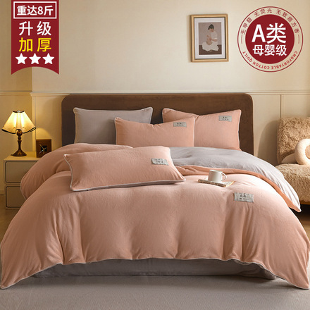 AB两面拼色牛奶绒床上四件套冬季加绒被套