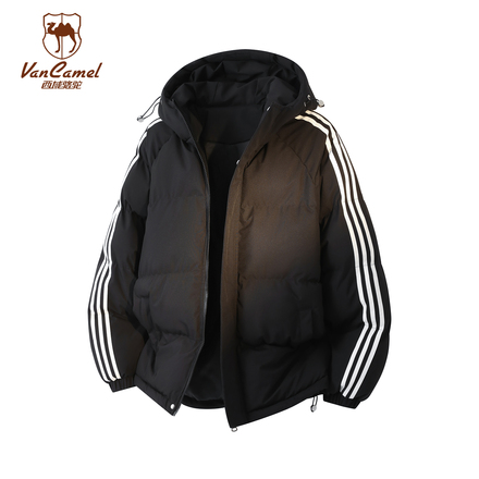 【西域骆驼】美式条纹连帽棉服