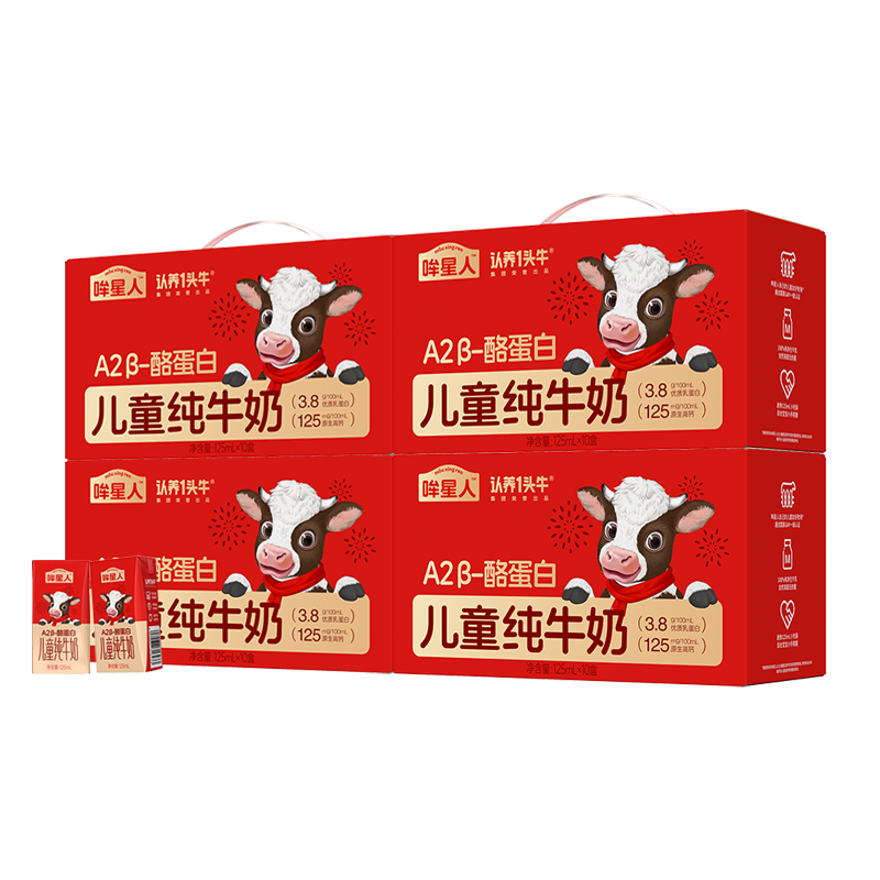 漏~认养一头牛哞星人,A2β酪蛋白125ml儿童奶,99元[\u1f250]10瓶装*4箱!春节包装!过年送人都可【日期新鲜】下单链接: https://uland.taobao.com/item/edetail?id=d43aGPDhZt3z7AW9jZcj4gSet3-BAvQrapUZr9B9KzGt6