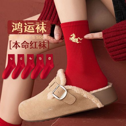 【五双装】新年好运袜子,马年主题设计,寓意吉祥,送礼自用都合适,温暖又喜庆!下单链接: https://uland.taobao.com/item/edetail?id=5qYDdmwcxty8KX0orKi7yOUMtV-0v9wj0BU5rY2kOjwsnz