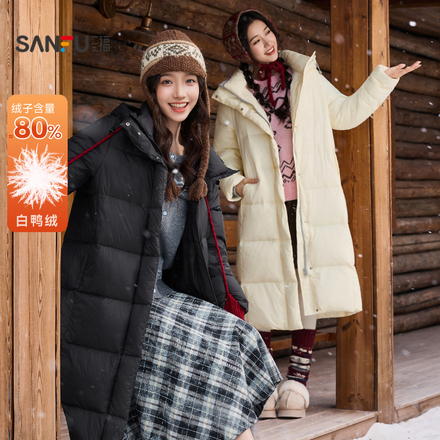 三福长款羽绒服女宽松连帽保暖外套