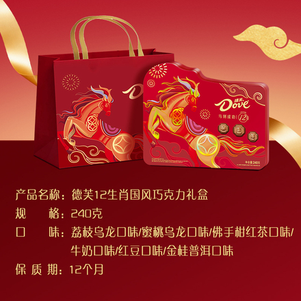 生肖马年限定礼盒,240g德芙巧克力,高端大气,送礼自用都合适!甜蜜满载,爱意满满!下单链接: https://uland.taobao.com/item/edetail?id=gZpN8a4h3t2Jd4nG8WIo3JUatr-POG60mWHOZopzpxqhGP