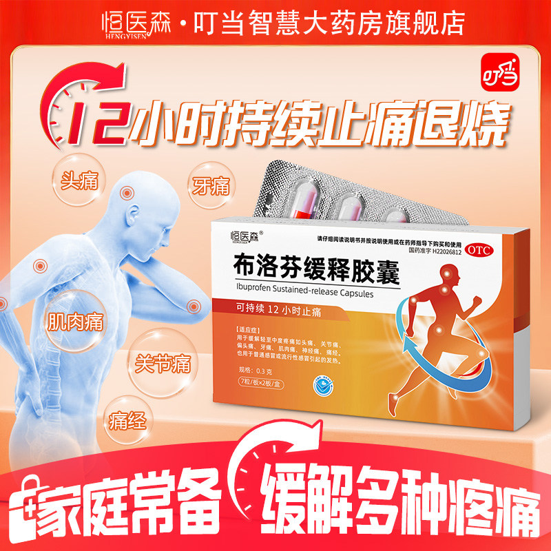 布洛芬缓释胶囊正品止痛头痛关节痛1盒14粒