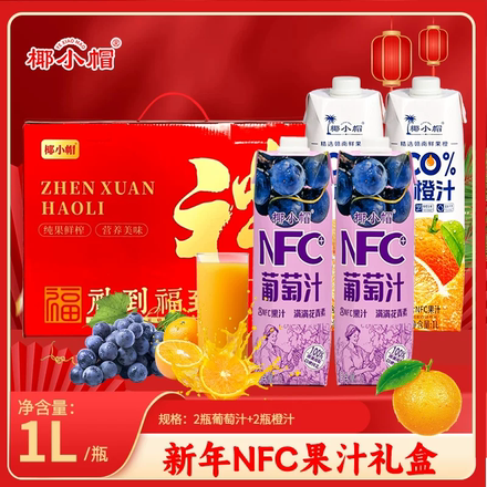 4瓶椰小帽NFC鲜橙汁葡萄汁超值礼盒装