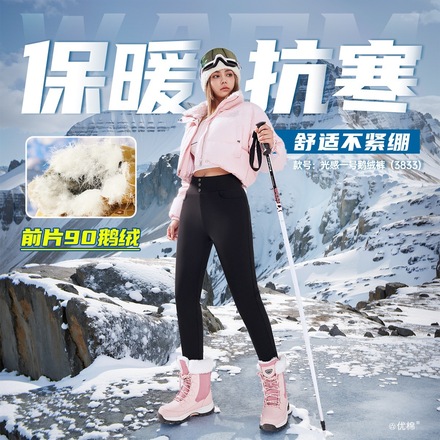 万拉小姐!光感一号鹅绒裤,防风+防水+防污,黑科技三防面料!光感UV蓄能锁温技术,红色蓄能光斑!前片:90白鹅绒填充,后片:羊毛+蚕丝5层绗缝,天然保暖材料,让你温暖如初!【赠退货宝】下单链接: https://uland.taobao.com/item/edetail?id=ANRGJQ3oSzt4amxMpo3SmOjCvtn-v6PKX7dC8PZxZ0q8hz