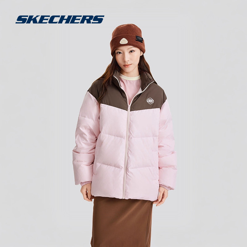 斯凯奇羽绒服复古撞色情侣款保暖外套