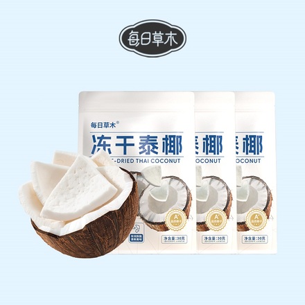 到手3袋!每日草木椰子冻干原味泰椰肉