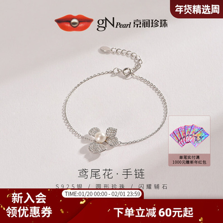 京润珍珠!鸢尾花925银淡水珍珠手链
