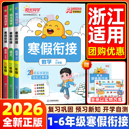 【浙江适用】2026新版阳光同学寒假衔接作业,同步教材,复习预习全搞定,思维拓展强,助力成绩提升,寒假学习好帮手!下单链接: https://uland.taobao.com/item/edetail?id=B4Bew66S6t8PY8JA04ipRkhrte-woMjqrKCQDD8VxMjuz