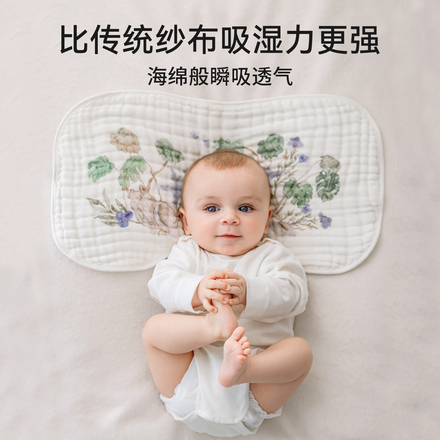 嫚熙婴儿纱布云片枕,A类材质柔软透气,防吐奶设计,四季适用,宝宝睡眠更舒适。下单链接: https://uland.taobao.com/item/edetail?id=znGa4wVTetajd5gY7pfvyGTdt4-OqGjQoAuZBnvkOVguN