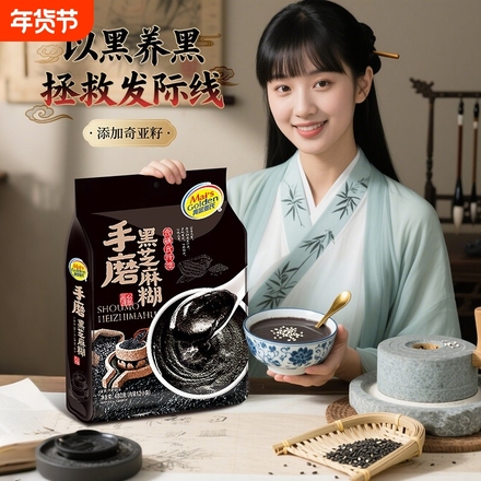 下拉金币9.82!奇亚籽手磨黑芝麻糊【480克*1袋】!传统手磨,原香原味,健康粗粮,健康营养代餐粉!独立小包装,即冲即饮,芝麻香浓郁!添加奇亚籽、黑桑葚等!代替早餐或晚餐、养生还减肥!下单链接: https://uland.taobao.com/item/edetail?id=AyXd73qCzt4aqvZN8XFmO3cvtn-GKGOWR8cbOoW4wkgSo
