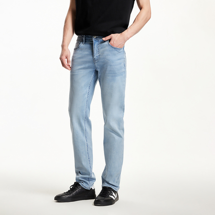 杰克琼斯春季弹力直筒浅蓝猫须牛仔裤