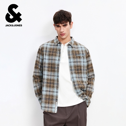 杰克琼斯男款春季纯棉宽松格子衬衫