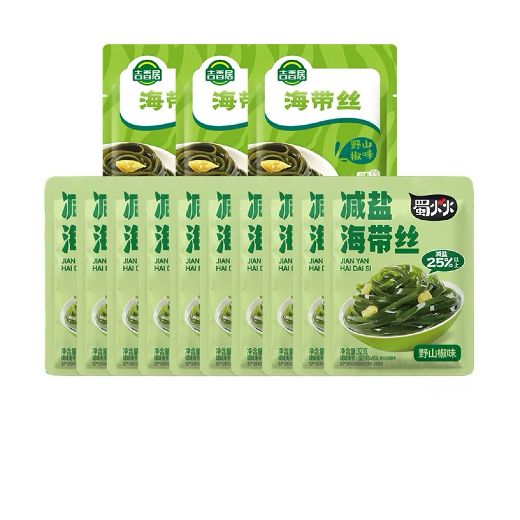吉香居海带丝野山椒双味来袭!13袋装,野山椒款酸辣开胃,减盐款轻享健康,脆嫩爽口,拌饭配粥超绝!独立小包,随时随地解馋,双口味满足全家,速抢!下单链接: https://uland.taobao.com/item/edetail?id=922Xe0PHBtOonWNzA3h2b8hQt6-GKGOWR8cbOnRqrpjuno