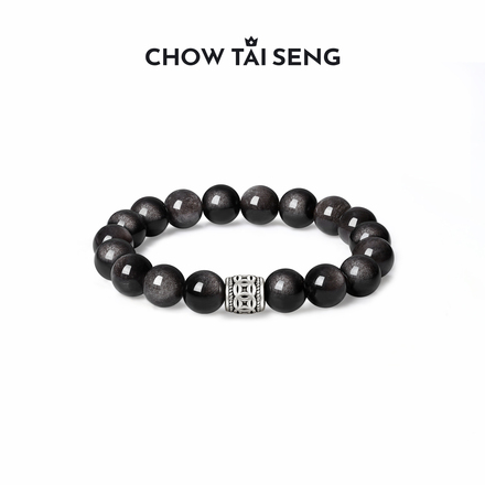 周大生黑曜岩手串男款纯银S925