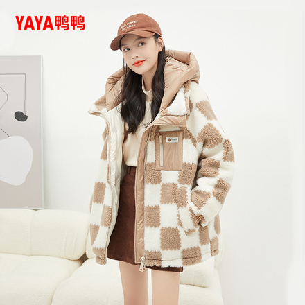 【鸭鸭官旗】中长款仿羊羔毛羽绒服