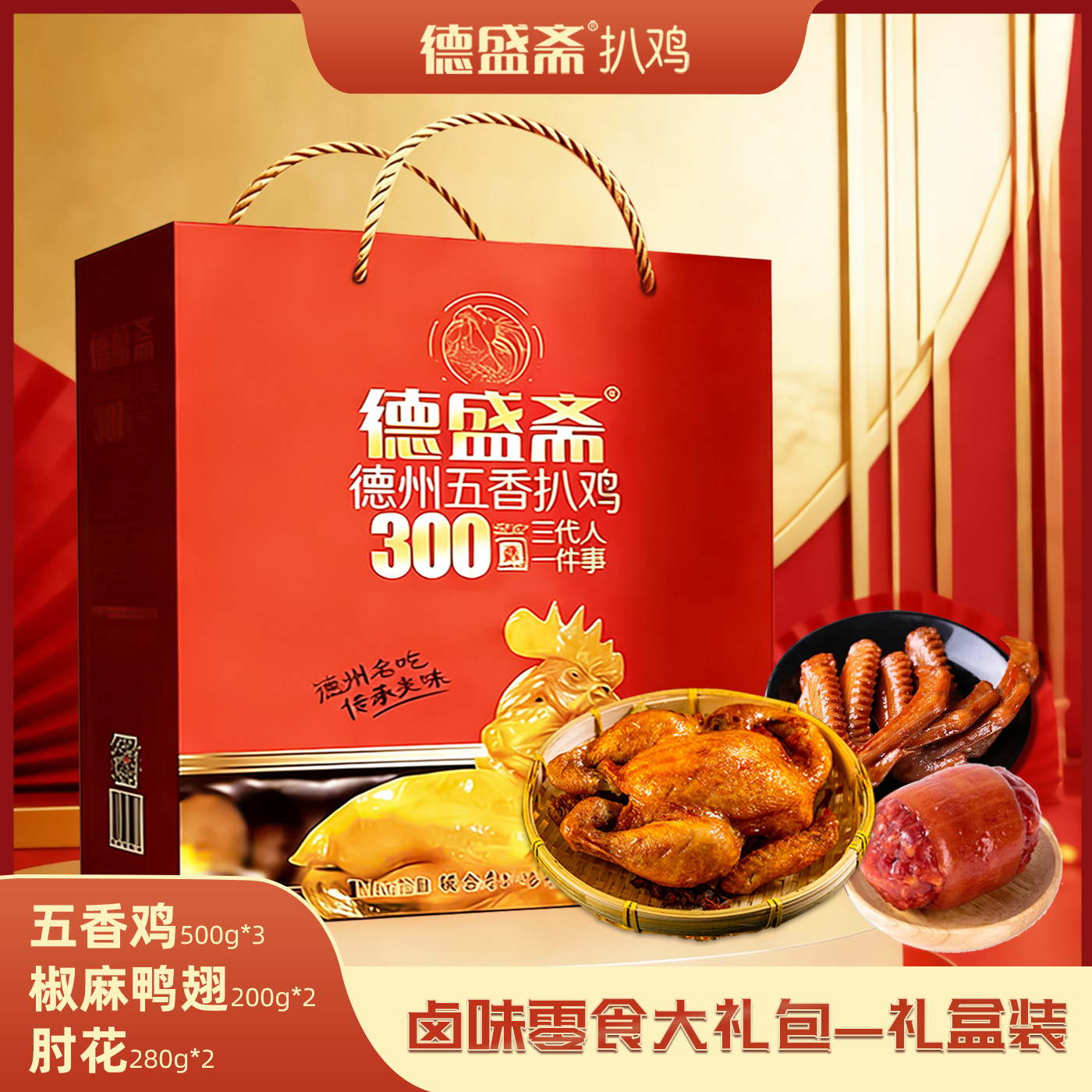 德盛斋五香扒鸡礼盒2460g德州特产扒鸡猪蹄卤味零食年货大礼包。下单链接: https://uland.taobao.com/item/edetail?id=kxyO0D9SYtaAKJgqdGhG9OtPtJ-WqGXOmeuXybrZBxaud