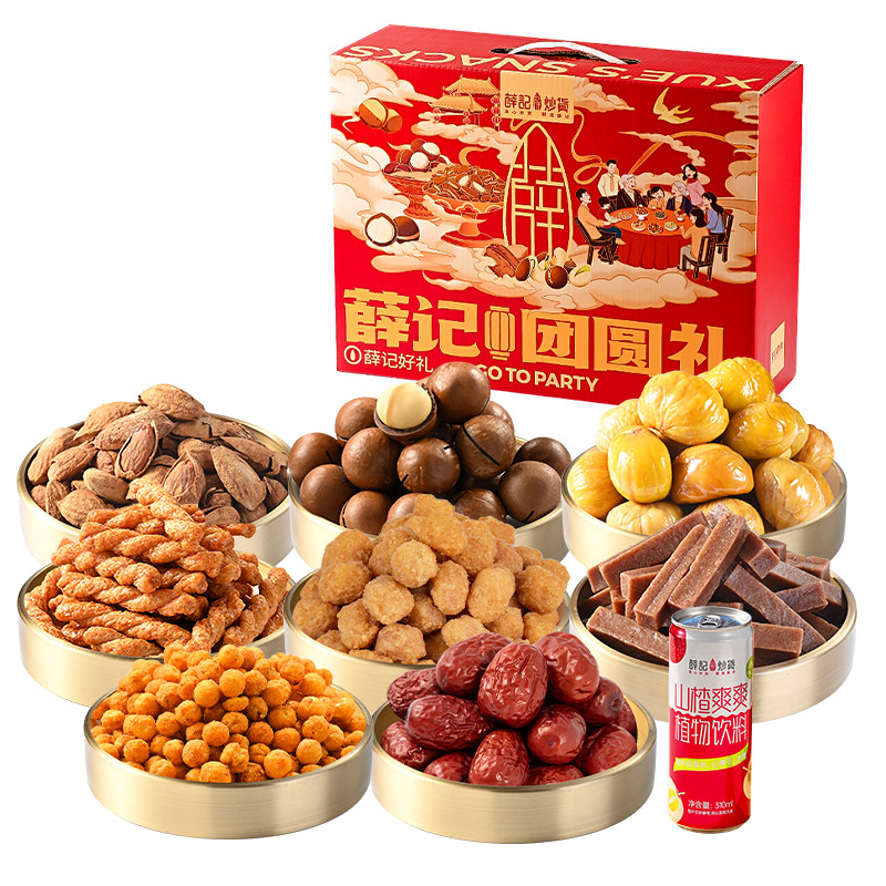 薛记炒货团圆锦礼1298g/9袋*3箱坚果礼盒