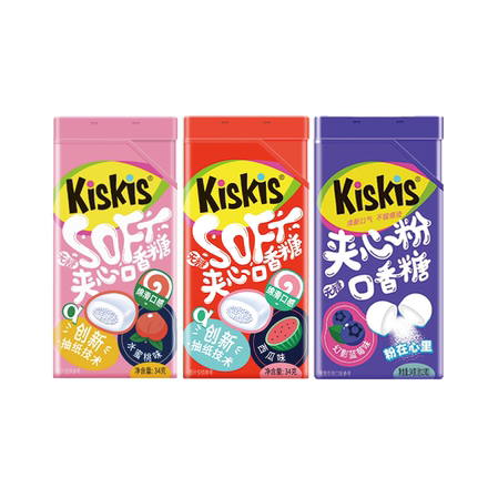 31.4亓三盒,清新口气必备!KisKis情话口香糖,木糖醇无糖配方,夹心设计更美味,蜜桃口味甜美可人,约会表白氛围感拉满!下单链接: https://uland.taobao.com/item/edetail?id=OvQawwmczt602q0xGzSN7KCMtJ-36ON23KC006JWOOVFn