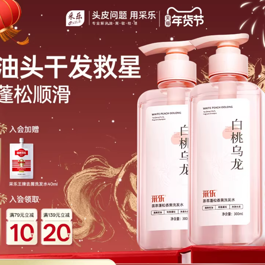 采乐无硅油白桃香氛洗发水300ml*3瓶