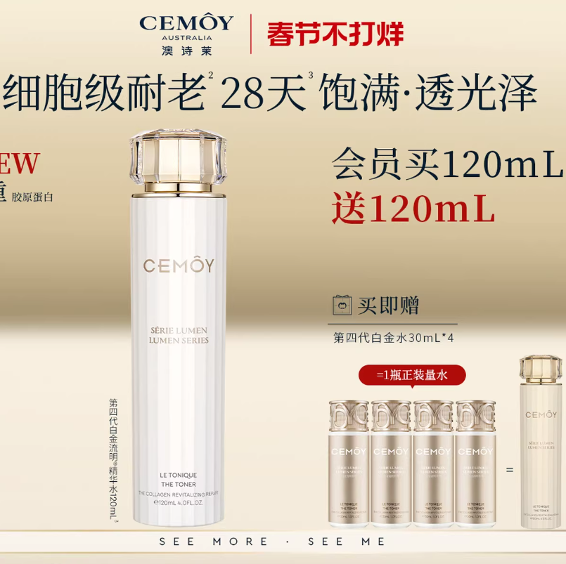【限时立减259,淘金币4.】CEMOY4 代白金流明精华!抗皱紧致,垮脸直接回春✨