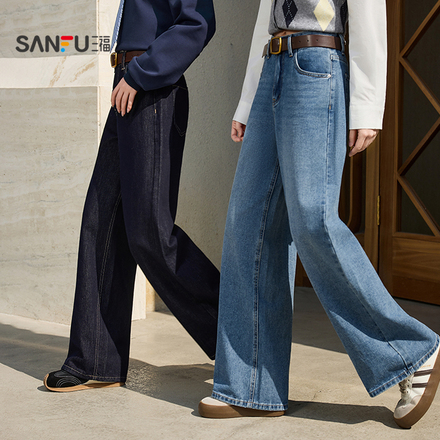 三福牛仔长裤女2026新款春季宽松阔腿裤