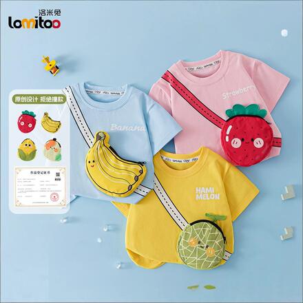 洛米兔儿童纯棉夏季短袖水果立体包包T恤