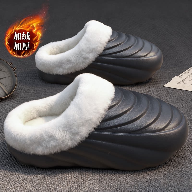 品牌剪标!情侣新款保暖加绒棉拖鞋