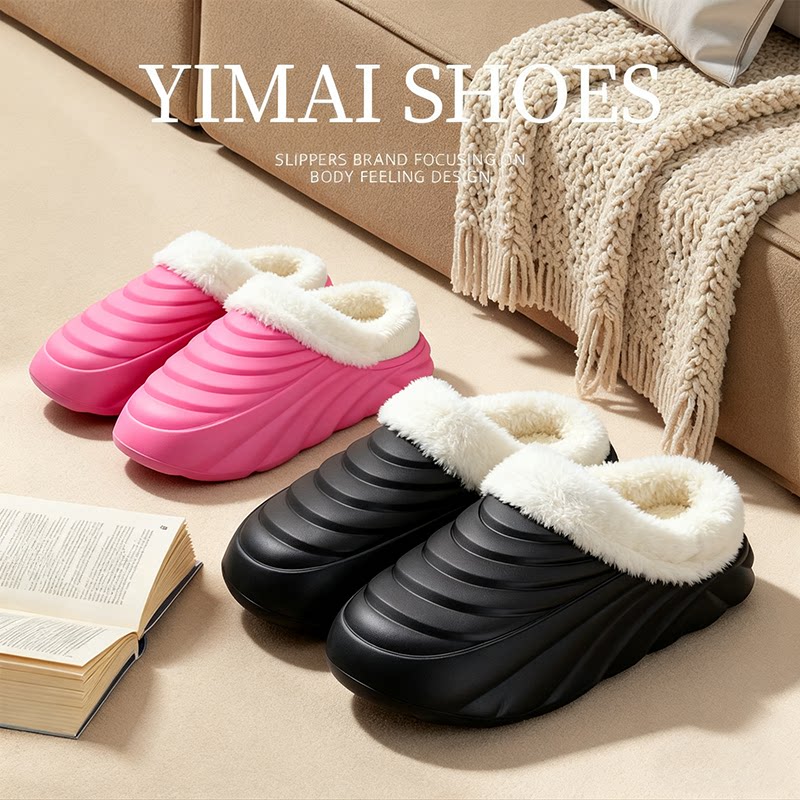 品牌剪标!情侣新款保暖加绒棉拖鞋