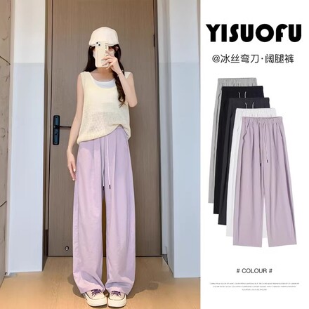 女款夏季冰丝速干弯刀裤,薄款设计透气舒适,肌理感面料显瘦显高,宽松阔腿版型遮肉修饰身材,适合日常休闲穿搭。下单链接: https://uland.taobao.com/item/edetail?id=D3bdK2j0TDt5Gzd9mXZTQW0Ujtn-XqGwrmpu39nXgOAdsBV