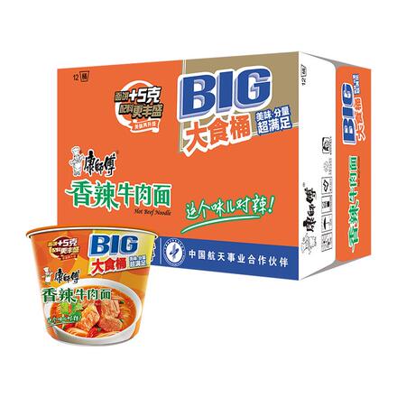 【猫超】康师傅大食桶香辣牛肉面112g*12桶