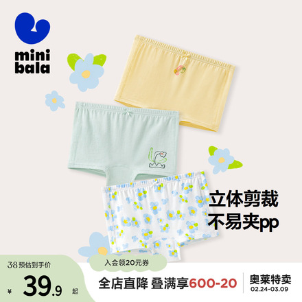 迷你巴拉巴拉女童平角内裤3条装柔软透气弹力舒适