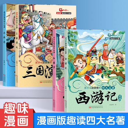 西游记+三国演义+红楼梦+水浒传!!趣味漫画!还原经典故事!通俗易懂!!让孩子们轻松阅读,爱上名著!!下单链接: https://uland.taobao.com/item/edetail?id=26j5vmkvsotg9BaVB5bca3aUDtD-POG60mWHONg8popyCGO