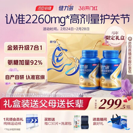 汤臣倍健健力多旗舰氨糖2260软骨素钙片,专为中老年设计,护关节强骨骼,官方正品保障!拍2件享优惠价,呵护爸妈的每一步!【退货宝】下单链接: https://uland.taobao.com/item/edetail?id=z0dV0pduetan94GQvPUv8ySdt4-POG60mWHKYxV99Rgf2