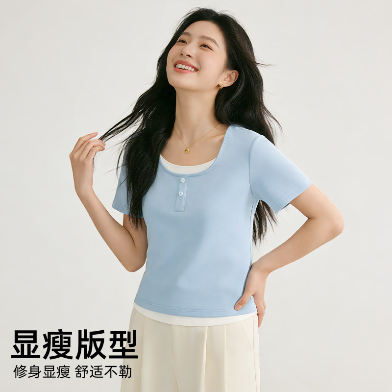 【礼金20%+88会员2.45+消费券到手25.3】2026新款雪中飞女式短袖T恤,假两件设计显瘦高级,小个子专属版型,小众质感,夏季必备!下单链接: https://uland.taobao.com/item/edetail?id=VryD5gvOI6tw4ymBk5Ri2GZSvtV-eQGMq6ACzqgyZvMVS9j