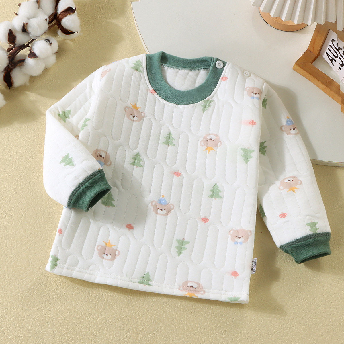 宝宝春秋夹棉内衣 纯棉轻薄打底家居服