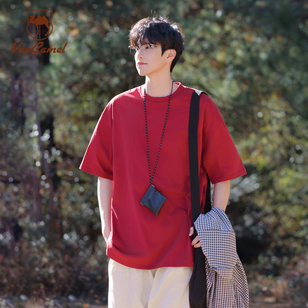 西域骆驼220G重磅纯棉短袖