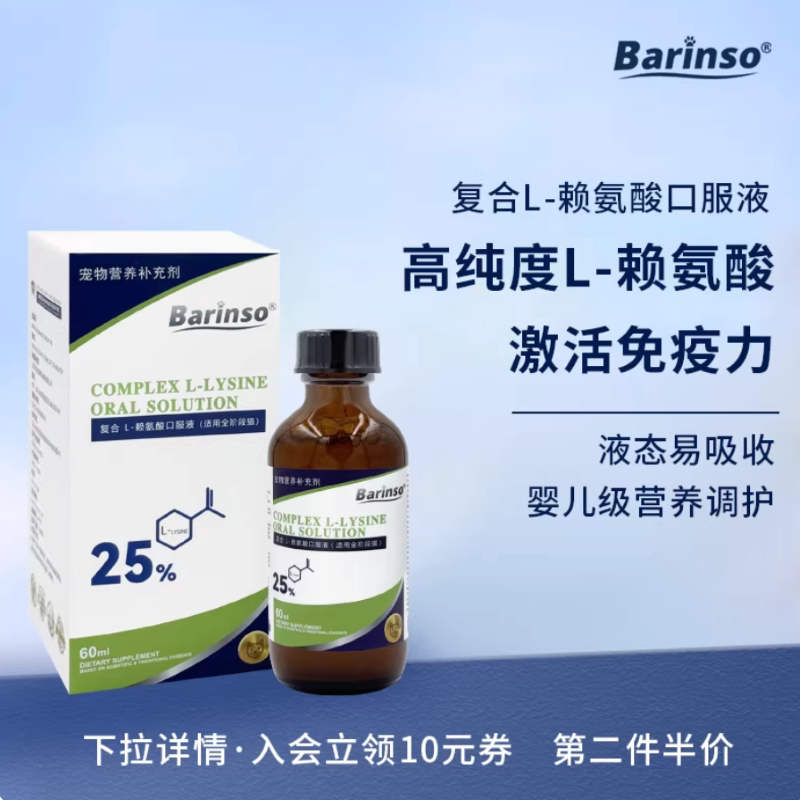 【领券2次后拍两件抵扣金币后到手5元2瓶】高纯度赖氨酸能有效抑制疱疹病毒复制,强化呼吸道防御屏障。科学配比促进抗体生成,改善挑食、体质虚弱问题~下单链接: https://uland.taobao.com/item/edetail?id=GGkookzC8tYmNWDKW9uY3qfQtJ-YJGeOZNHjPjVJOd0Ia3