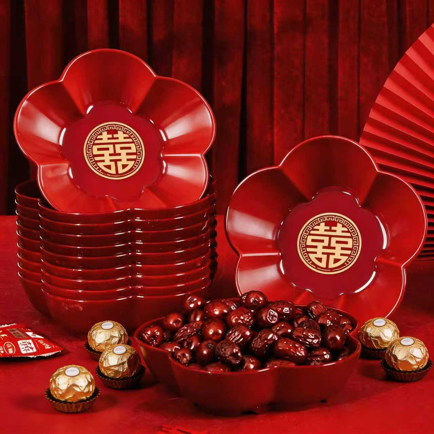 红色喜字设计,婚礼必备果盘,喜庆又实用,适合摆放在客厅或茶几,装糖果干果美观大方,寓意幸福美满!下单链接: https://uland.taobao.com/item/edetail?id=za7zPMZUetanZgXxZVHv8Jsdt4-J5Gmbn7uQRzZOyjjsV