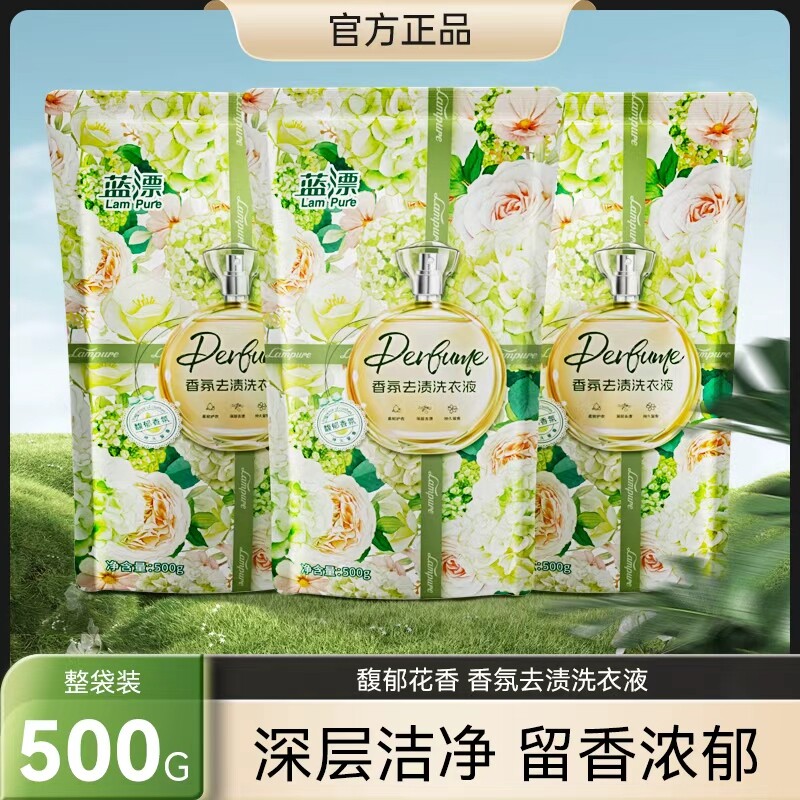 洗衣救星蓝漂洗衣液来咯!500g精巧一袋,薰衣草香超迷人。生物酶配方,去污护色,低泡易漂还护手,赶紧入手~下单链接: https://uland.taobao.com/item/edetail?id=qdwkgW9U2t4aROD7NGcg0YsWt0-bXG76geHvJormANVsx