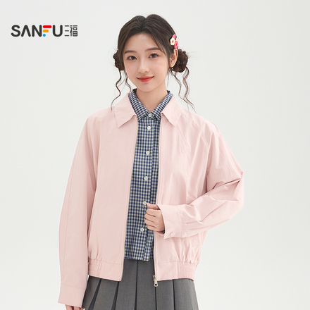 三福外套女春季英文绣花宽松净色夹克