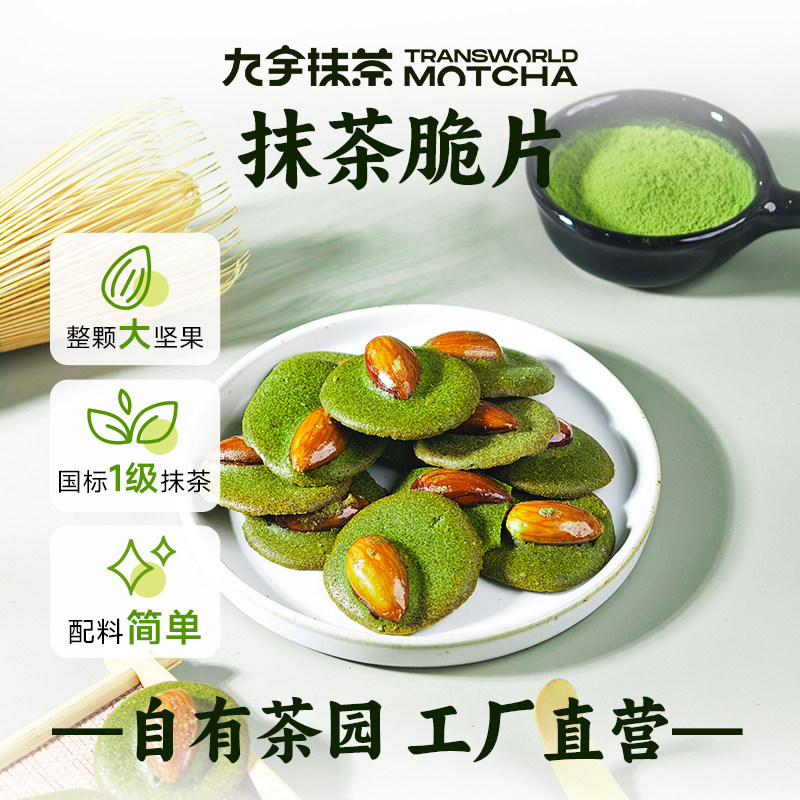 【赠一包龙井雨露茶】径山九宇抹茶脆片,网红零食,巴旦木果仁薄脆饼干,整颗坚果,一口要到茶与坚果的交响,国标1级抹茶,配料简单,入口清香!下单链接: https://uland.taobao.com/item/edetail?id=vp2053QiZt6jYeV5xDFABzS0te-nJAVXpdHjBKgv7BAizN