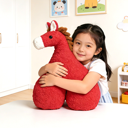 红色可爱小马造型抱枕,毛绒柔软,适合儿童卧室和客厅使用,可作靠垫或玩具。淘金币活动期间购买更优惠!下单链接: https://uland.taobao.com/item/edetail?id=4keo4qRugtNgoXx6GJuwgZtNtg-GKGOWR8cbZkQOxKxt3