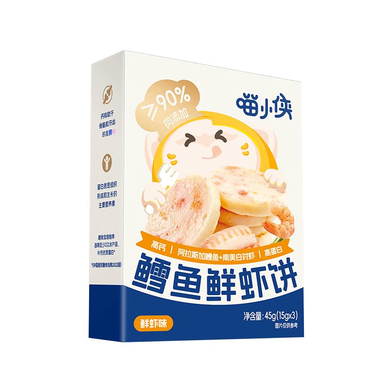【高钙高蛋白】喵小侠鳕鱼鲜虾饼,儿童早餐零食优选!营养丰富,宝宝爱不释口,健康美味更贴心!下单链接: https://uland.taobao.com/item/edetail?id=mRDoO3biktJnWqbqdVCzjOiot3-4V2A3ZgI867O6K8QCO9